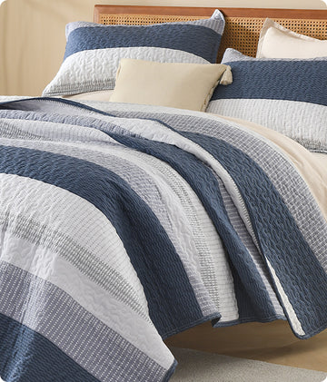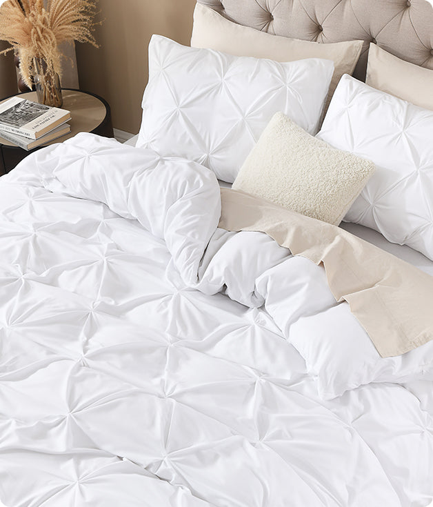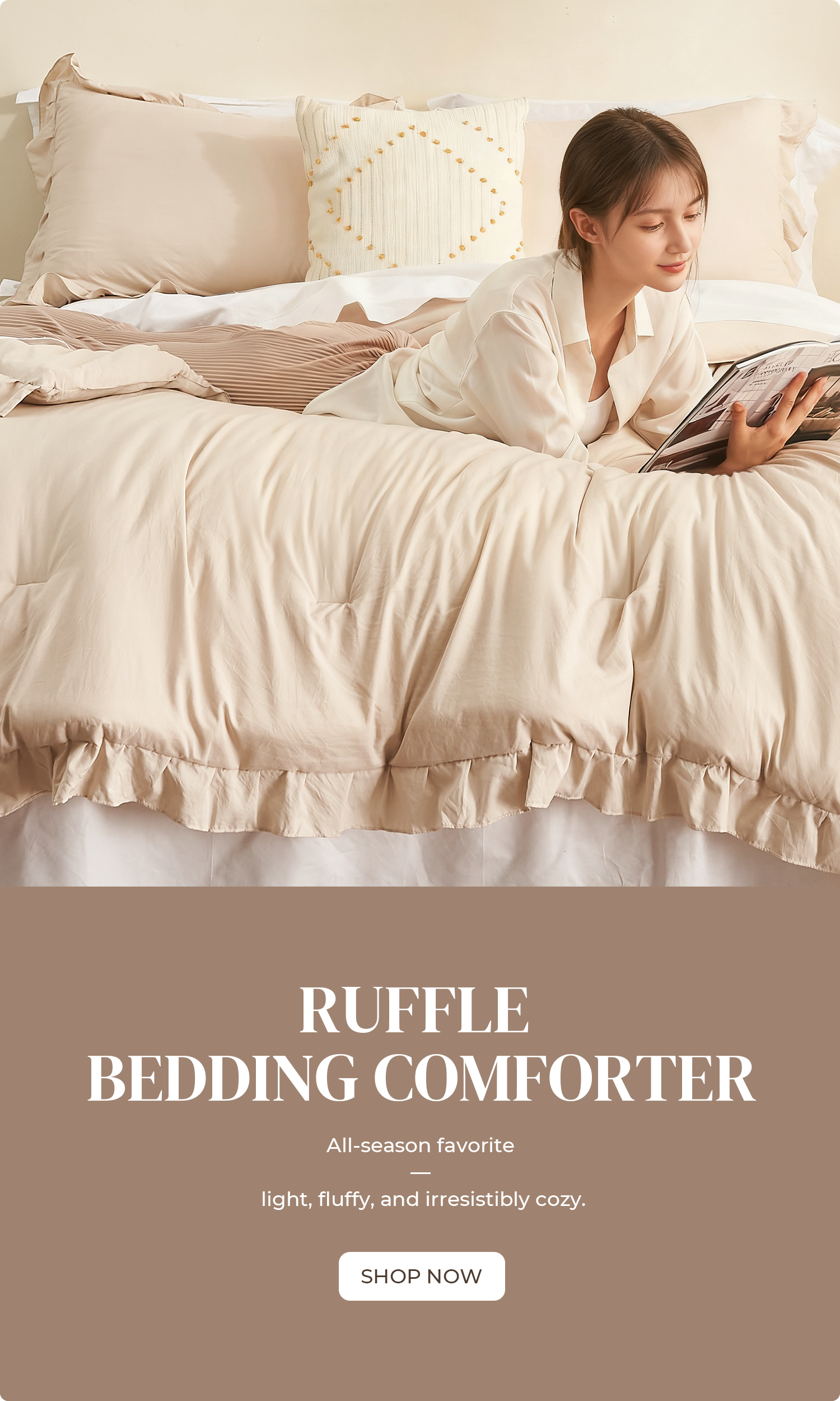 Love this light weight comforter. Comfortable A+ Super soft A+ beautiful design with a subtle ruffle A+ Purchased for guest bedroom and liked it so much, ordered a 2nd one for Master bedroom. Highly reccommend.