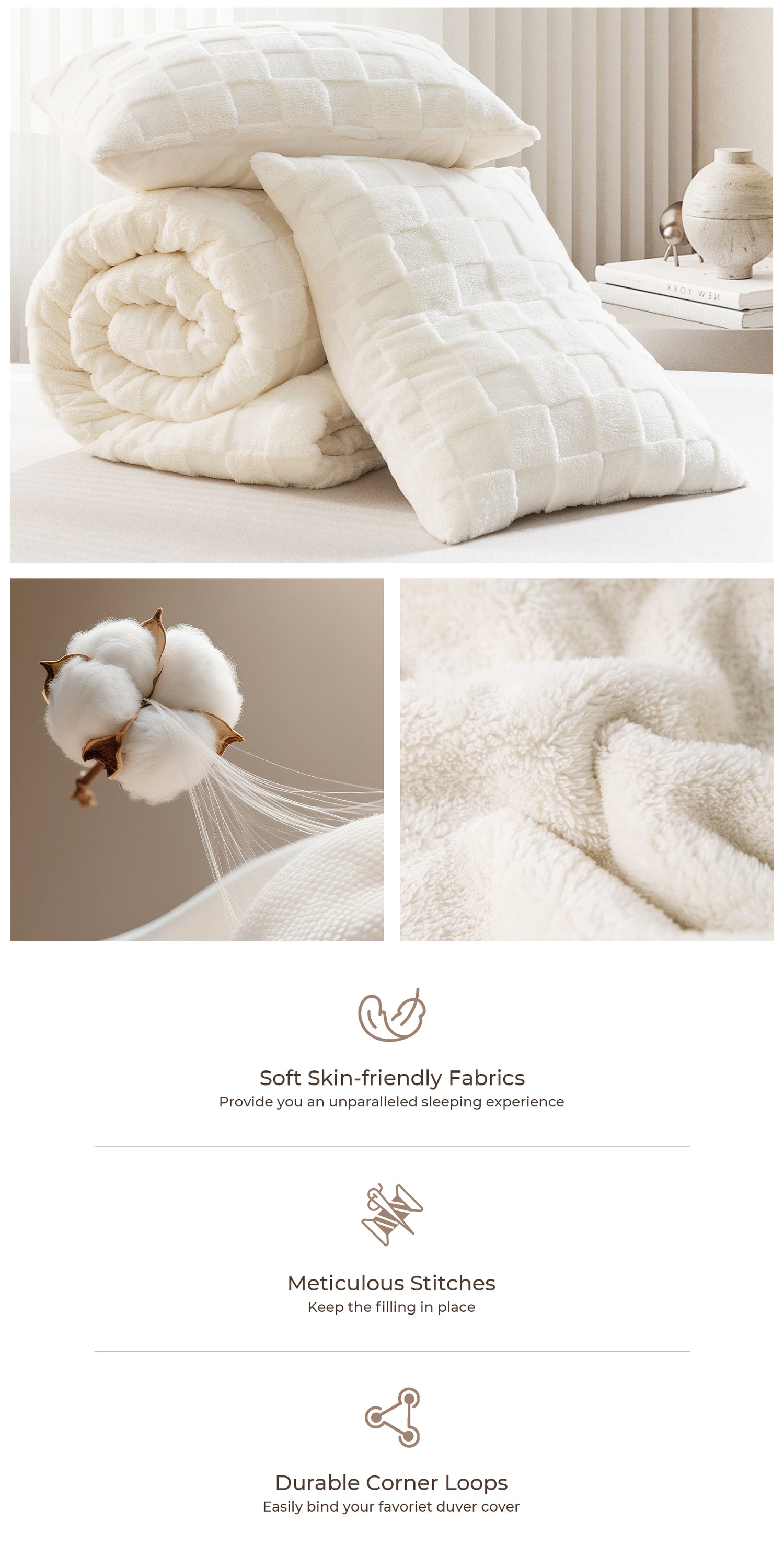 I was honestly surprised! This came in such a small box i was concerned at first. Only to find out it was just vacuum sealed. It puffed up immediately. Even ran it through a fluff cycle in the drier and man, I was NOT dissapointed! This had no reviews so I was scared... but let me be the first one! I recommend it and it's the perfect soft Kawaii set for my room. I'm still in love with it a month later.