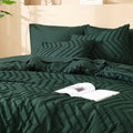 - What's included: 7 Pieces Bed in a bag includes 1 comforter, 1 flat sheet and 1 fitted sheet , 2 pillowcases and 2 pillow shams. Since the comforter comes in vacuum-sealed packaging, it is highly recommended to wash it and tumble dry low temperature to puff the comforter before first use. Or you can expose it to sunlight and tap gently, then it will re-fluffed nicely after hours.