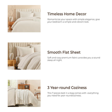 Considerate Design: 7 Pieces bed in a bag is the perfect solution to your bedding matching problems. The 14" deep pocket fitted sheet covers your mattress firmly, no matter how you twist and turn in your bed. Meticulous stitches on the surface of the comforter keeps the filling in place