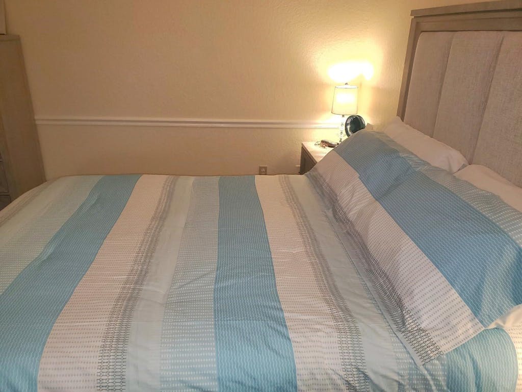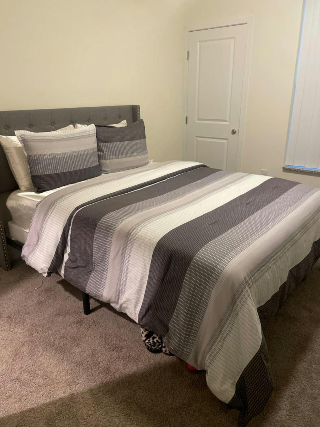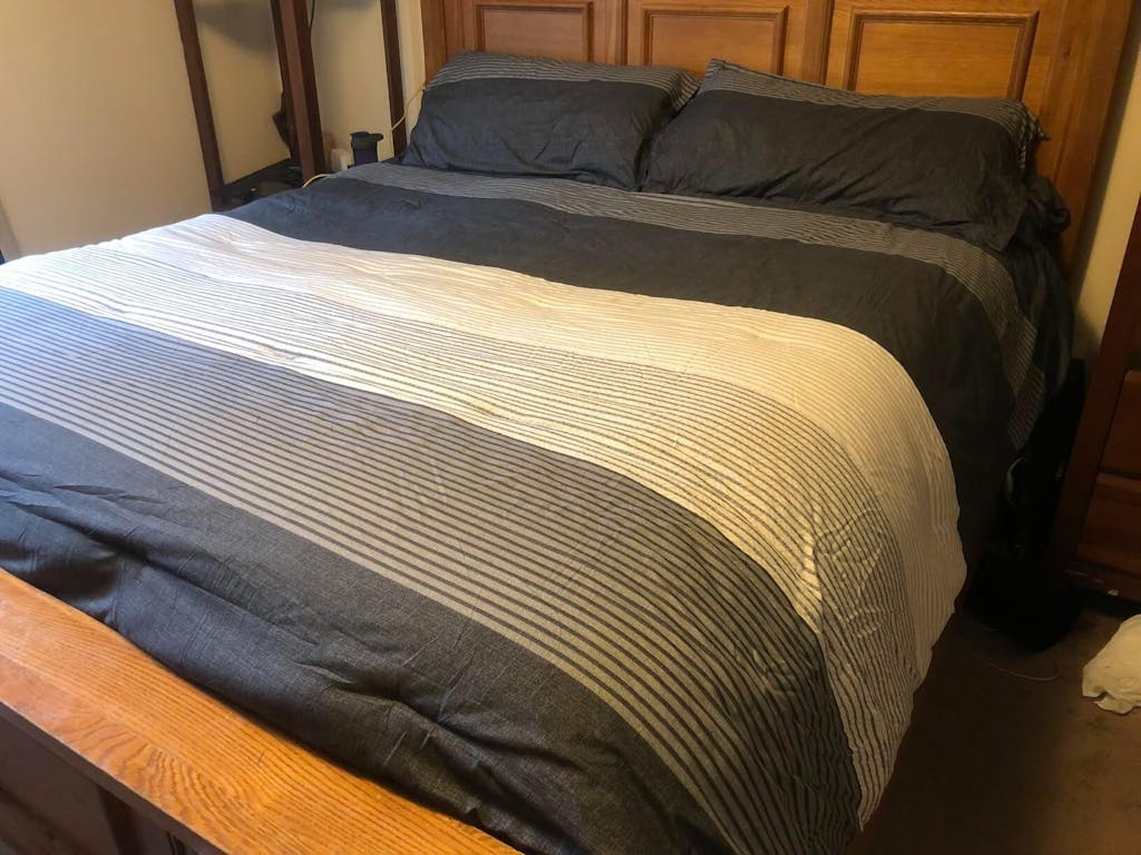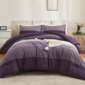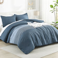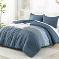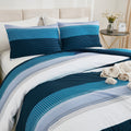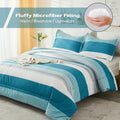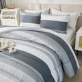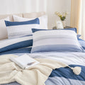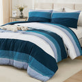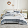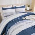 - [ PACKAGE INCLUDES ] Queen Size Down Alternative Comforter Set: 1 stripe comforter queen (90x90 inches) with corner loops (can be fixed with your duvet cover), 2 envelope pillowcases (20x26 inches). Vacuum packaging. *Due to manual cutting, pattern of pillow sham is random. The pillow insert is not included.