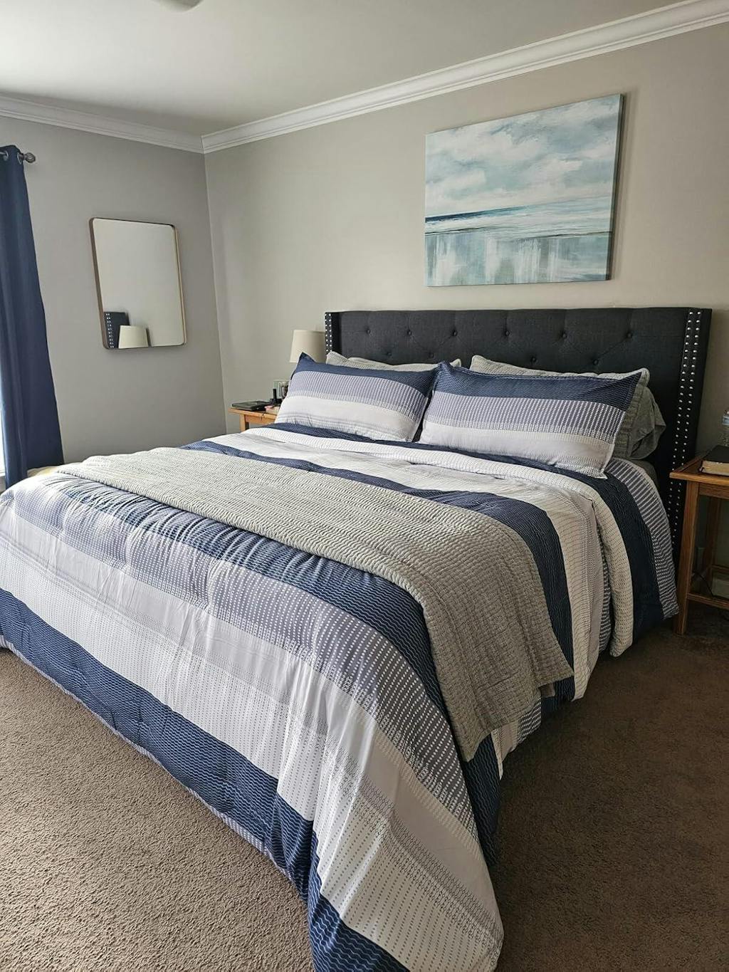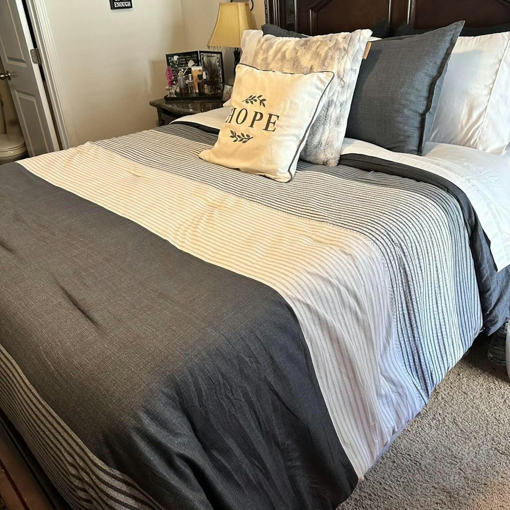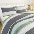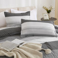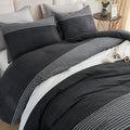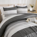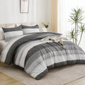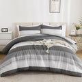 - [ MODERN STRIPED DESIGN ] Litanika has combined three color patchworks with classic striped pattern to complement each other wonderfully. Striping with colors achieves a stylish look for your room. Black and white are often preferred by artists, and this modern with a casual elegance bedding comforter set is a perfect choice for homeowners with sophisticated taste in decoration. Also, it is a great gift idea for all your loved ones on special occasions.
